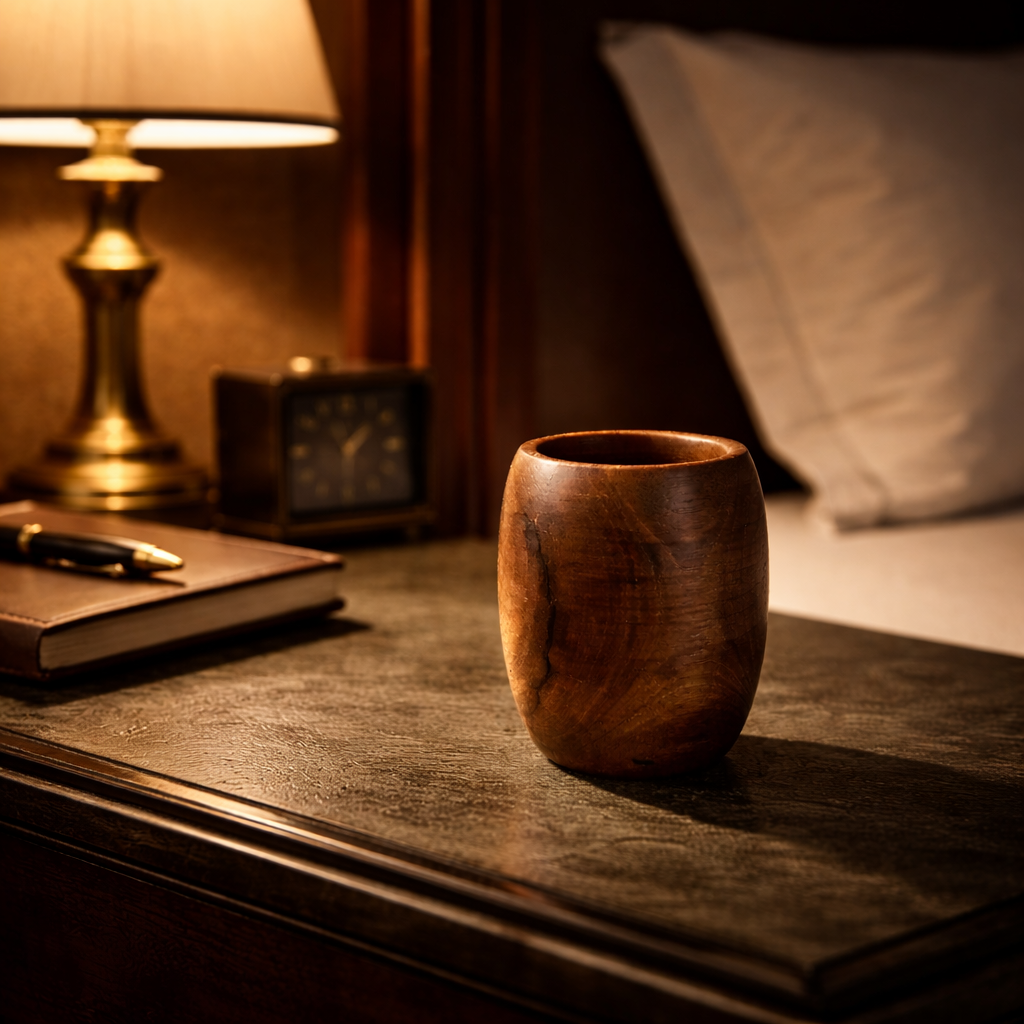 The Junipeغ Essence is a 250ml handcrafted water cup sculpted from premium Junipeغ wood, designed for refined hospitality and intentional living. Its compact silhouette rests perfectly in the palm, offering a minimalist yet powerful presence in any luxury setting.