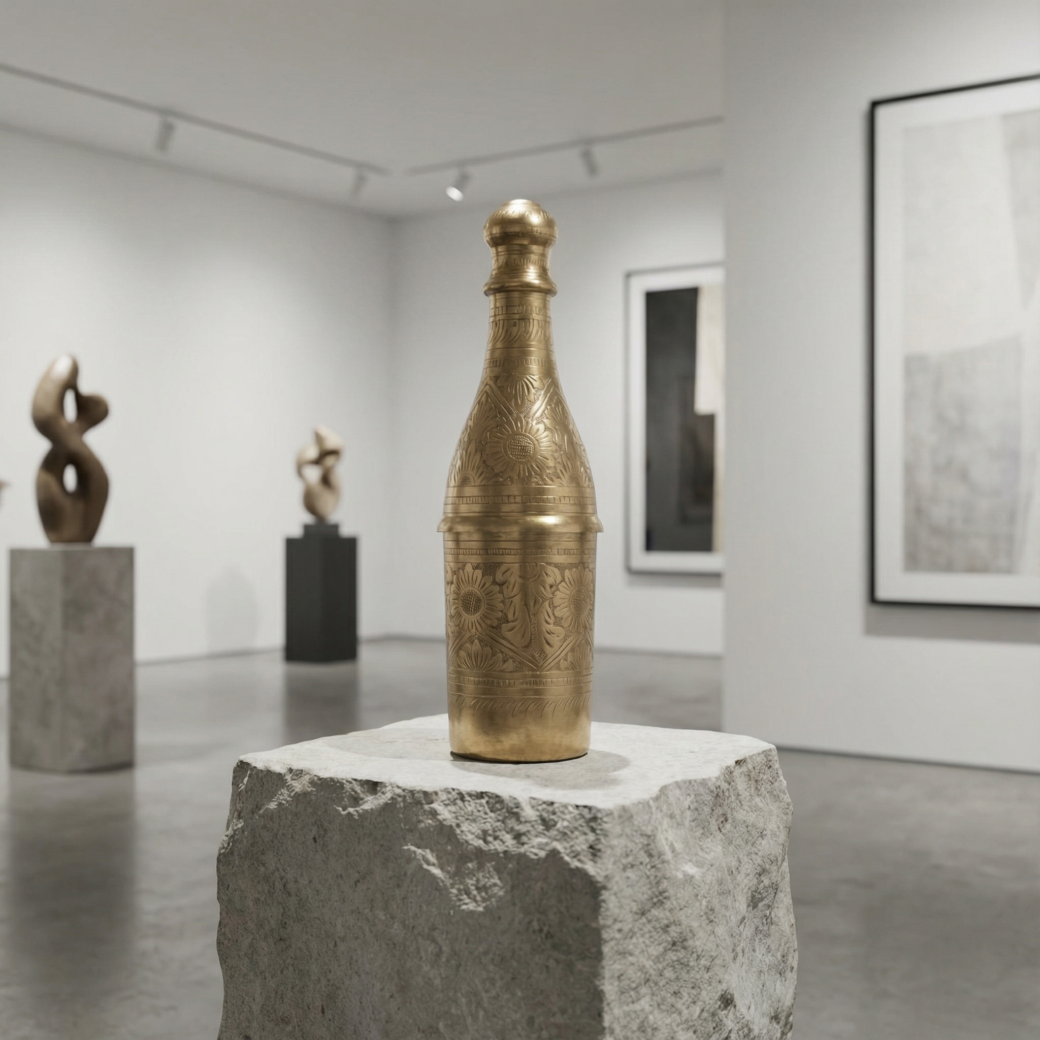 The Motheغ Bottle is a sculptural brass bottle designed to hold, protect, and elevate a water bottle within. Opening seamlessly in two halves, it transforms a functional object into a refined presence one that belongs in luxury interiors, hospitality spaces, and ceremonial settings.
