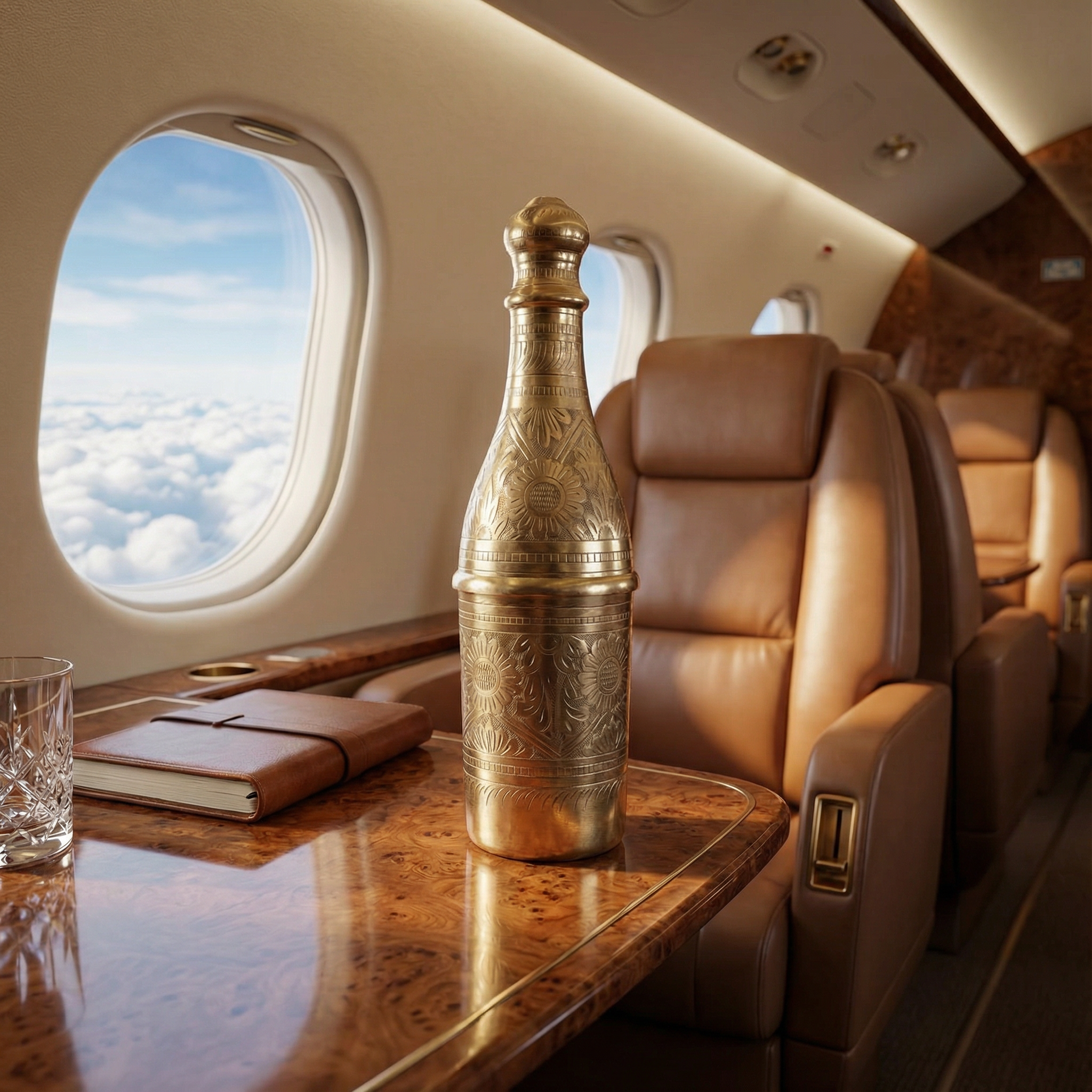Used in hotels, riads, meeting rooms, private residences, or aboard yachts and jets, the Motheغ Bottle acts as both container and statement. When closed, it appears as a monolithic brass object, when opened, it reveals its function quietly, without spectacle.